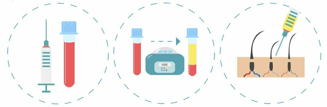 Les demandes de PRP sont effectuées à l’hôpital. Le processus commence par le prélèvement de sang sur la personne. Par centrifugation, les composants sanguins riches en thrombocytes sont séparés des autres composants. La partie riche en thrombocyte (thrombocyte), leucocyte, facteurs de croissance et stokine est injectée dans le cuir chevelu de la personne. L’ensemble du processus prend au plus une à une heure et demie. & nbsp;